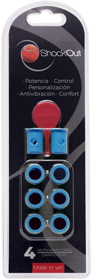 • Personalizzazione. I dampers di ShockOut® sono commercializzati in diversi aolori (e ne arriveranno altri). In questo modo possiamo scegliere quello che meglio si associa alla racchetta, così come possiamo personalizzarla distribuendoli nei fori nella manierà che ci piace di più.